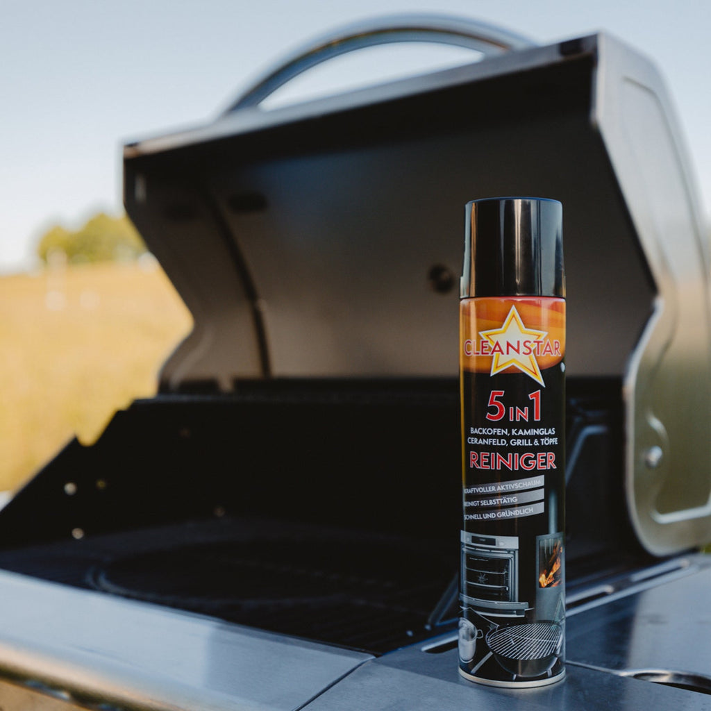 Grillrost/-Korpus: Grill erkalten lassen und von grobem Schmutz befreien. Einwirkzeit ca. 10 Minuten.
