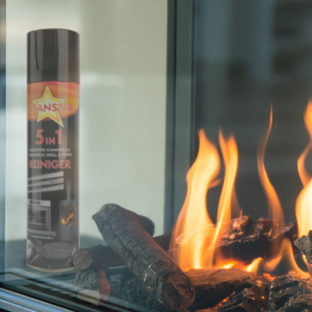 Kamin vollständig erlöschen und erkalten lassen. Einwirkzeit ca. 30 Minuten.